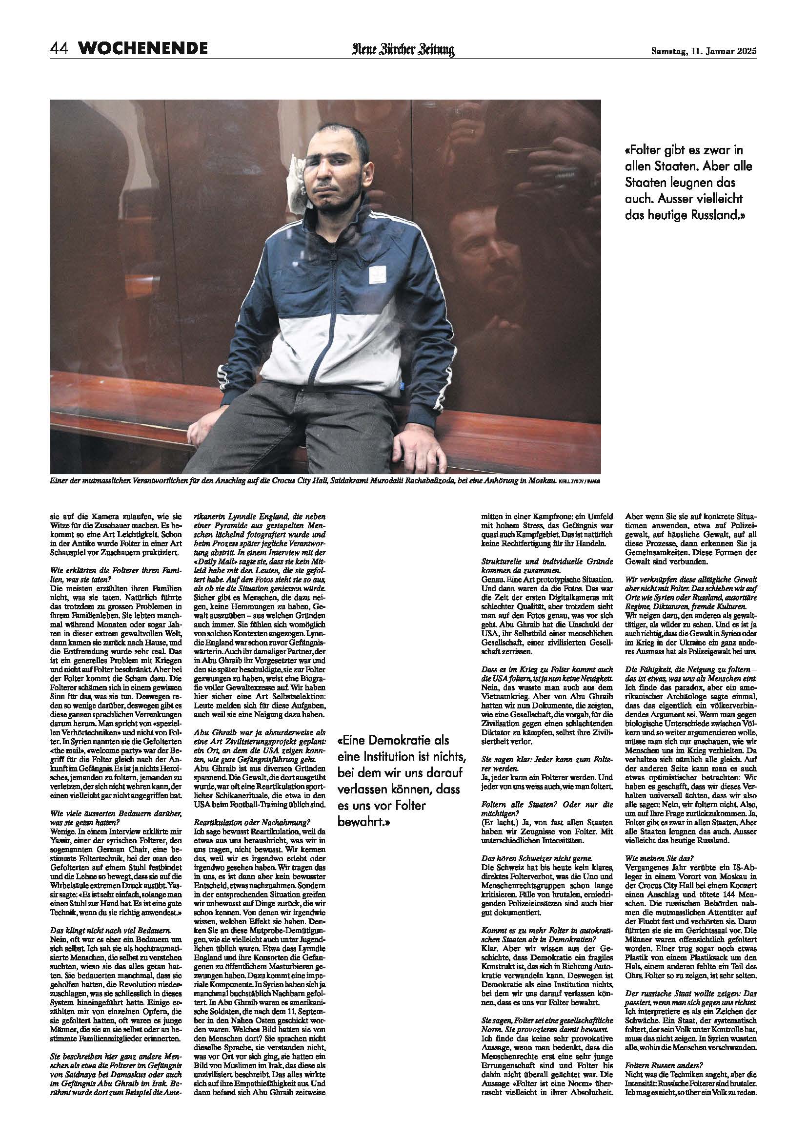 In this full-length feature of my research on political violence and torture, the leading Swiss newspaper of record NZZ interviewed me following the fall of the Syrian regime in late 2024, and the further normalization of torture and other forms of violence globally due to geopolitical shifts.