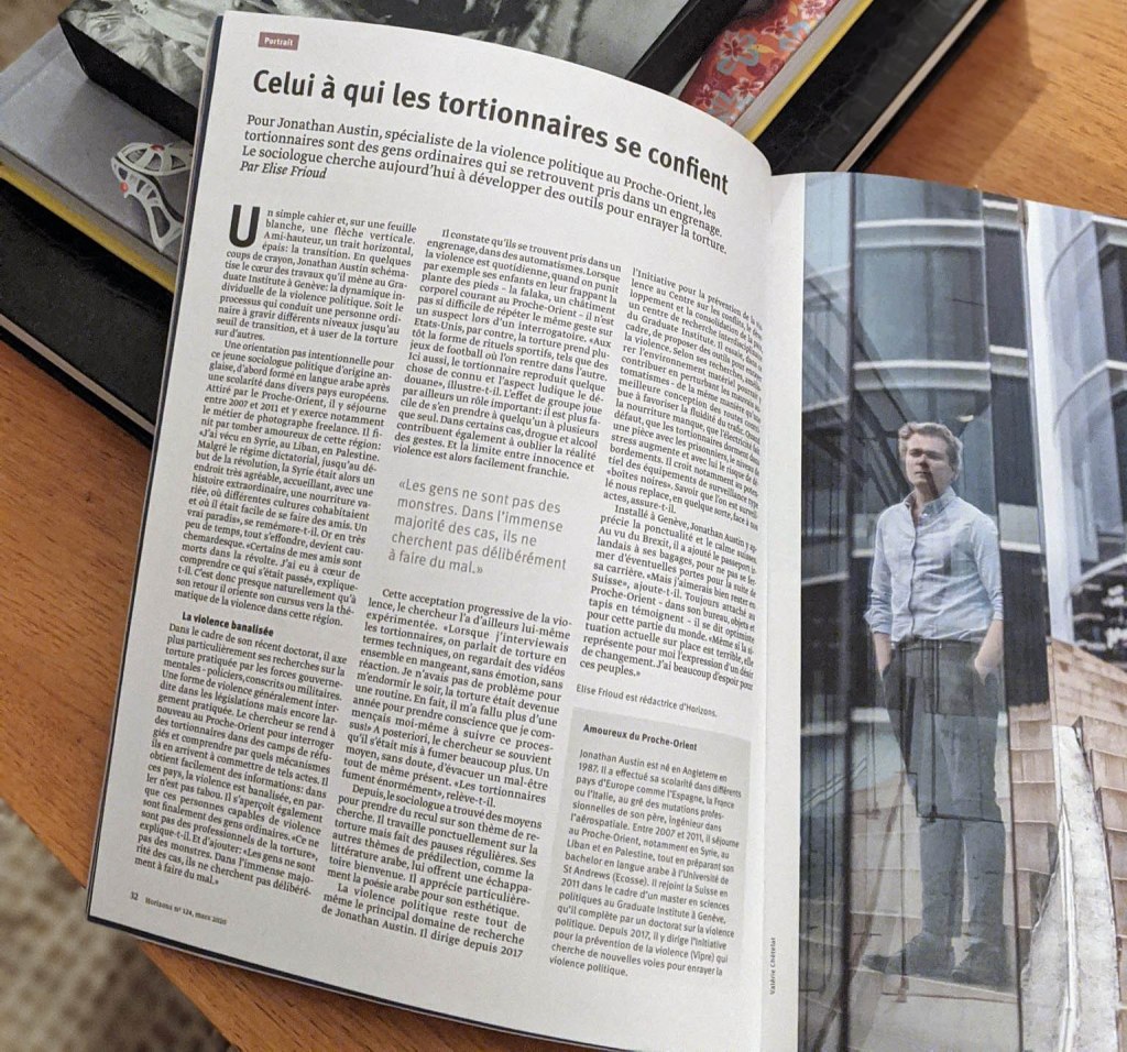 My work received a full-length profile in the Swiss research magazine Horizons, with particular focus on my work interviewing perpetrators of war crimes, as well as my applied work on violence prevention.